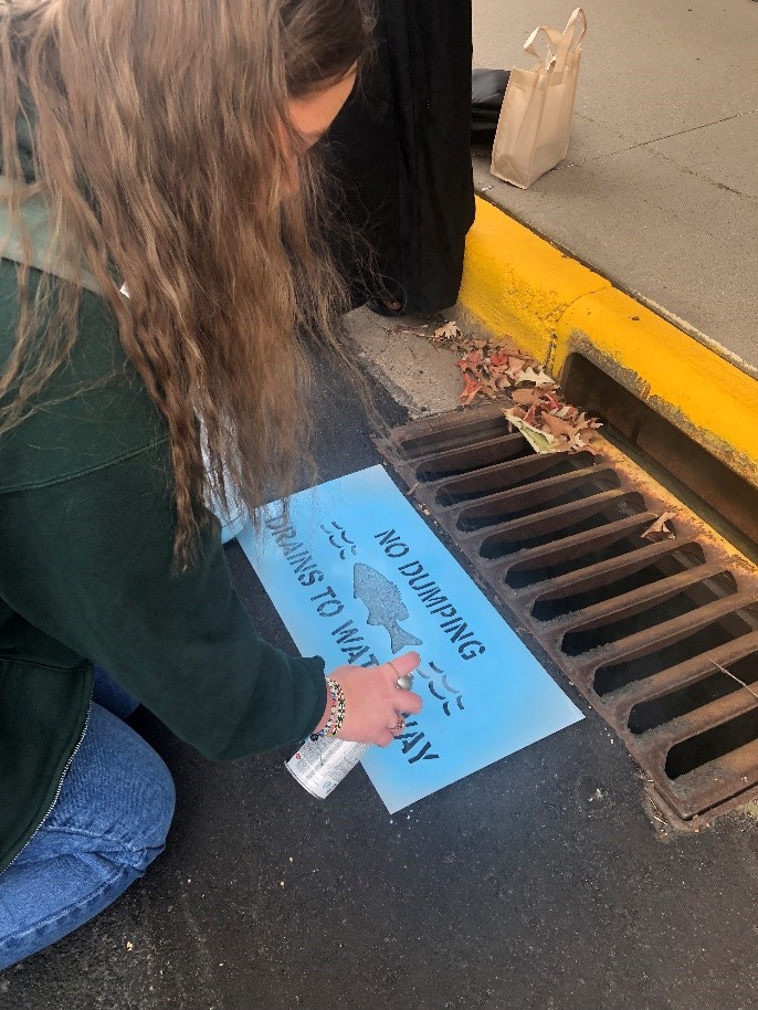 The student senate from both Coon Rapids and Cambridge campuses recently held two storm drain labeling events to drive public awareness of the stormwater drain systems. Anoka Ramsey Community College maintains MS4 permits for managing stormwater collection. MS4 stands for Municipal Separate Storm Sewer System and is a program to protect waterways from pollution where stormwater management systems drain directly into natural water systems. At the Coon Rapids campus storm drains flow directly into the Mississippi river and Cambridge campus storm drains flow directly into the Rum River, a tributary river to the Mississippi.
